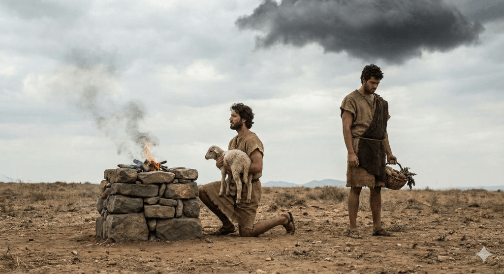 Génesis 4 introduce a los primeros hijos de Adán y Eva. Caín y Abel crecen en un mundo ya afectado por el pecado, pero donde la adoración a Dios todavía es practicada. Ambos presentan ofrendas al Señor, lo cual indica que el culto no surge como iniciativa humana tardía, sino como respuesta temprana a la revelación divina.