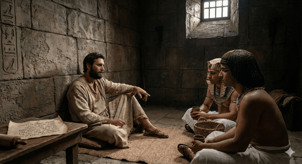 Génesis 40 presenta a José aún encarcelado, a pesar de su integridad. Allí se encuentra con dos oficiales del faraón: el copero y el panadero. Aunque José interpreta correctamente sus sueños, permanece en prisión aun después de haber servido fielmente. El texto afirma que el copero “no se acordó de José, sino que le olvidó” (Gn 40:23).