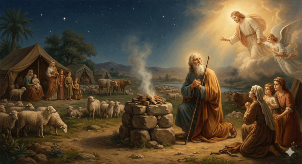 Génesis 46 comienza con una escena profundamente pastoral. Jacob, antes de descender a Egipto, ofrece sacrificios a Dios. En respuesta, el Señor se le aparece en visiones de noche y le habla con palabras de consuelo y dirección:
