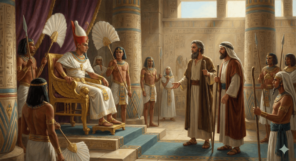 Éxodo 5 relata el primer encuentro de Moisés y Aarón con el faraón. La petición es sencilla: permitir que el pueblo vaya a servir a Jehová. La respuesta del faraón es una declaración de desafío abierto: