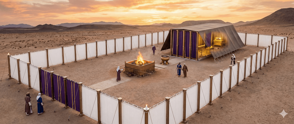 El atrio delimita el espacio santo y establece un recorrido claro: del exterior hacia la presencia. Este diseño pedagógico comunica que Dios invita a acercarse, pero lo hace conforme a un orden santo. La fe bíblica no es desordenada ni improvisada.