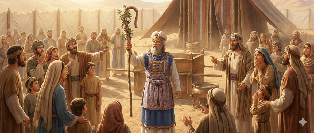 La vara que florece confirma que la autoridad establecida por Dios produce vida y fruto, no imposición. Colocada delante del arca, queda como testimonio permanente: el verdadero liderazgo se reconoce por el fruto visible, no por la autoafirmación.
