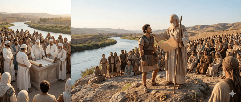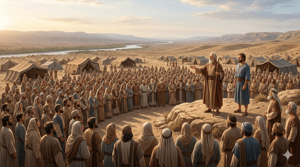 Israel continúa reunido en las llanuras de Moab, frente al Jordán. El final del ministerio de Moisés está cerca, y el pueblo se encuentra en uno de los momentos más solemnes de su historia. Después de recordar las bendiciones y advertencias del pacto, Moisés convoca ahora a una renovación consciente del compromiso con Dios.