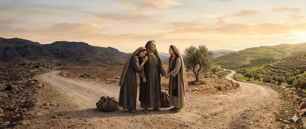 Rut 1 comienza con pérdida y desolación. Noemí pierde a su esposo y a sus hijos, quedando en una situación de extrema vulnerabilidad. En el mundo antiguo, la viudez implicaba desprotección económica y social. Ante esta realidad, Noemí decide regresar a Belén, habiendo oído que Jehová había visitado a su pueblo para darles pan (Rt 1:6).