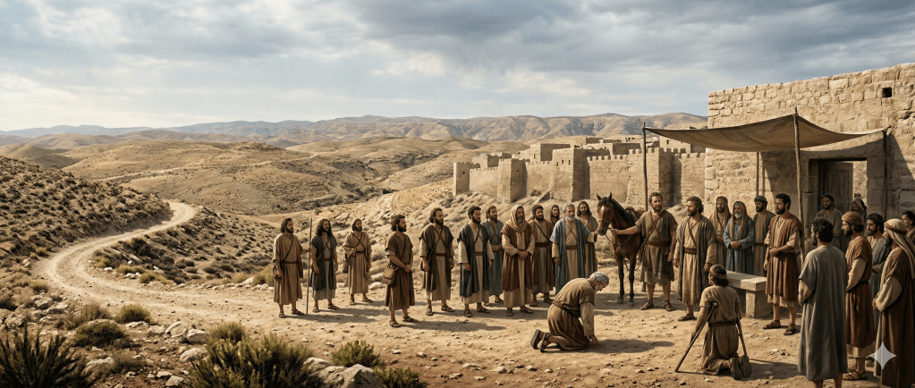 David se levanta y se sienta a la puerta, restaurando el orden del reino, mientras el regreso expone la fragilidad de la reconciliación y la necesidad de misericordia con discernimiento.