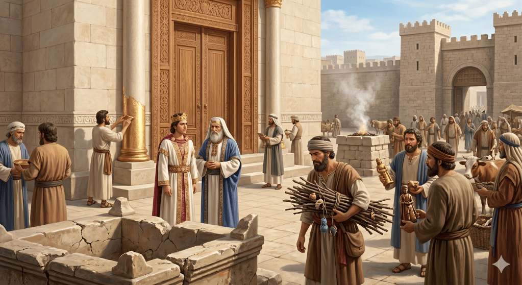 La reorganización del sistema de ofrendas para reparar el templo muestra una intención seria de restauración. Pero también evidencia que el pueblo había descuidado lo esencial. El templo, símbolo de la presencia de Dios, había sido deteriorado no solo físicamente, sino espiritualmente. Esto enseña que cuando la adoración pierde su centralidad, incluso las estructuras más sagradas comienzan a deteriorarse.